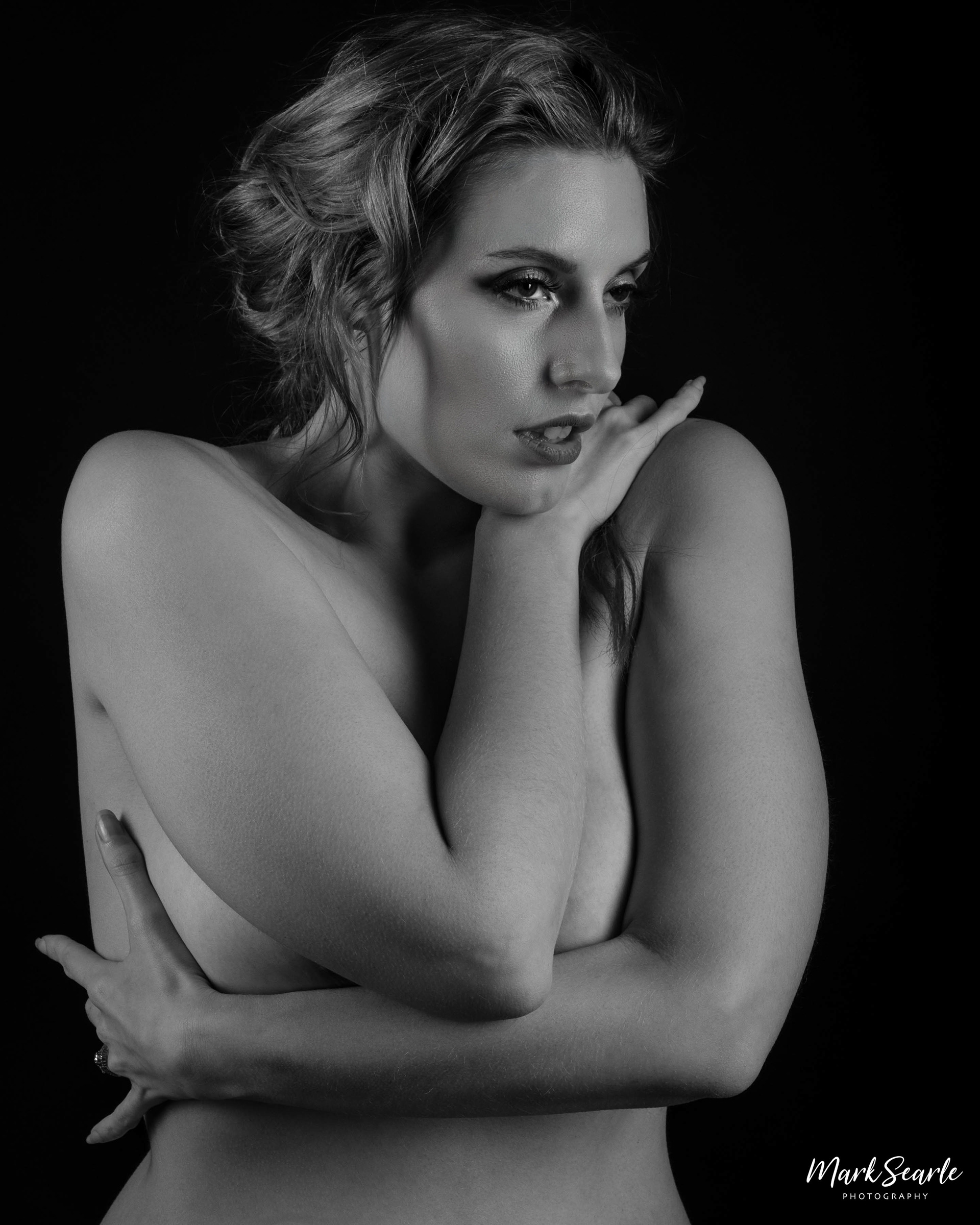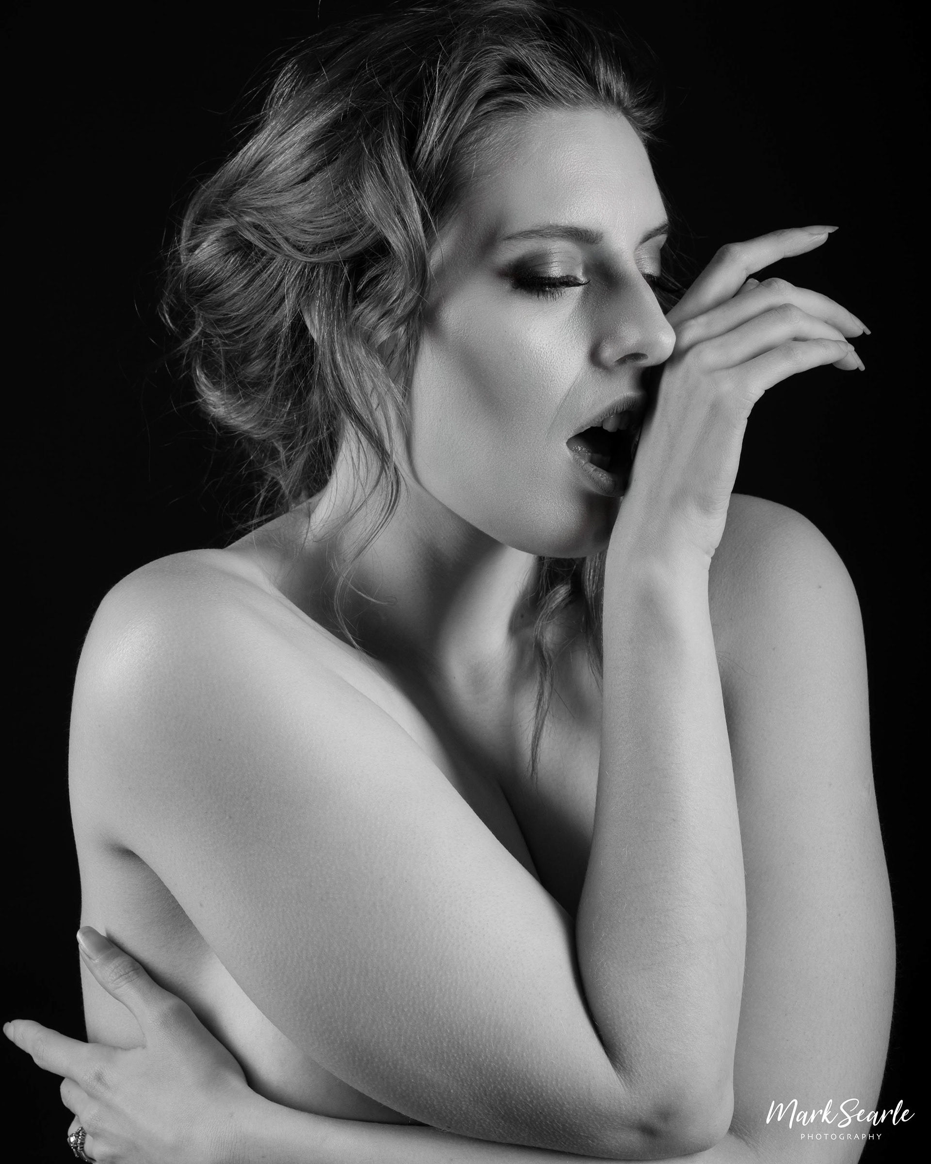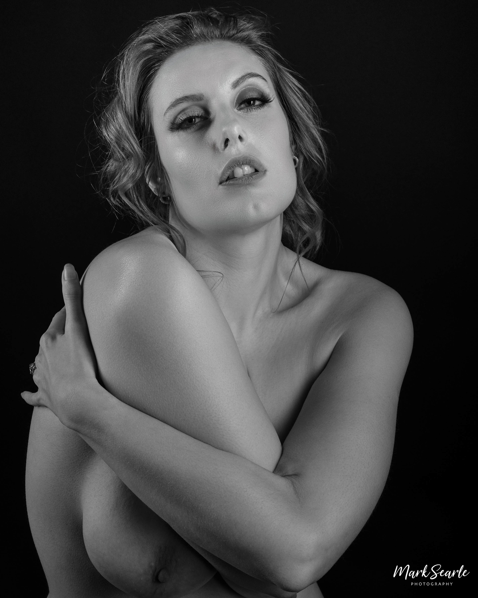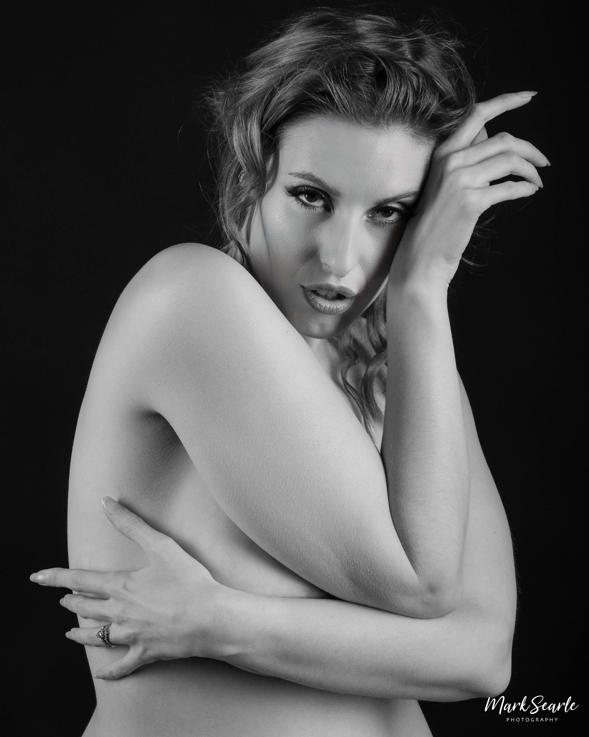 Monochrome nude portraits of Arabella, shot at Crossroads Studio, Keighley
